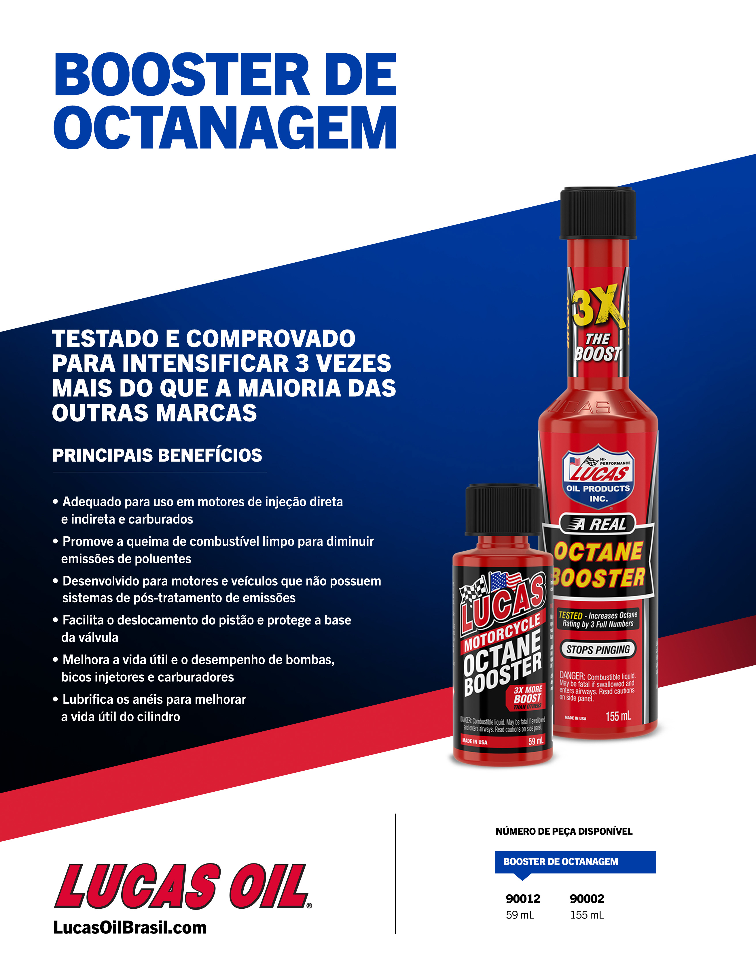 Lucas Octane Booster é uma solução de alta performance que foi testada e comprovada para oferecer três vezes mais aumento de octanagem do que a maioria dos produtos concorrentes.